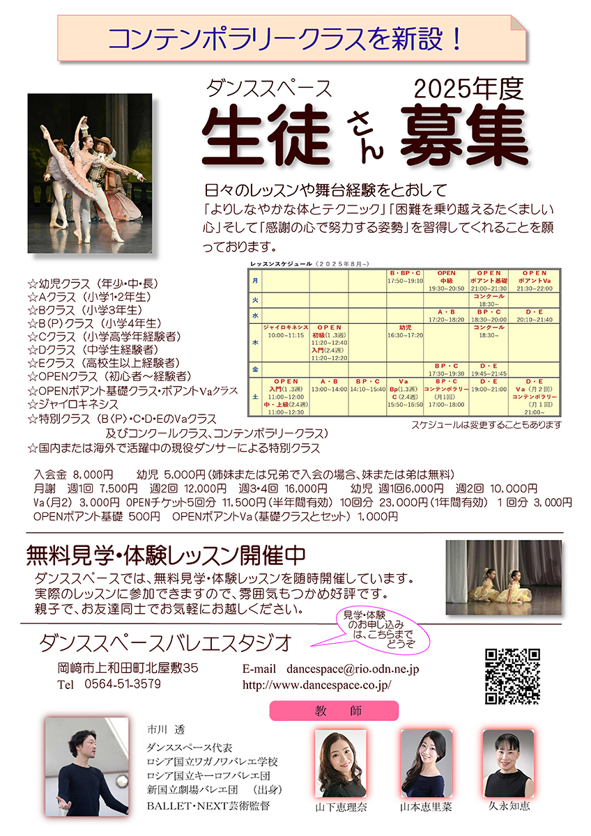バレエの教室・スタジオをお探しの方はぜひダンススペースにお問い合わせください。