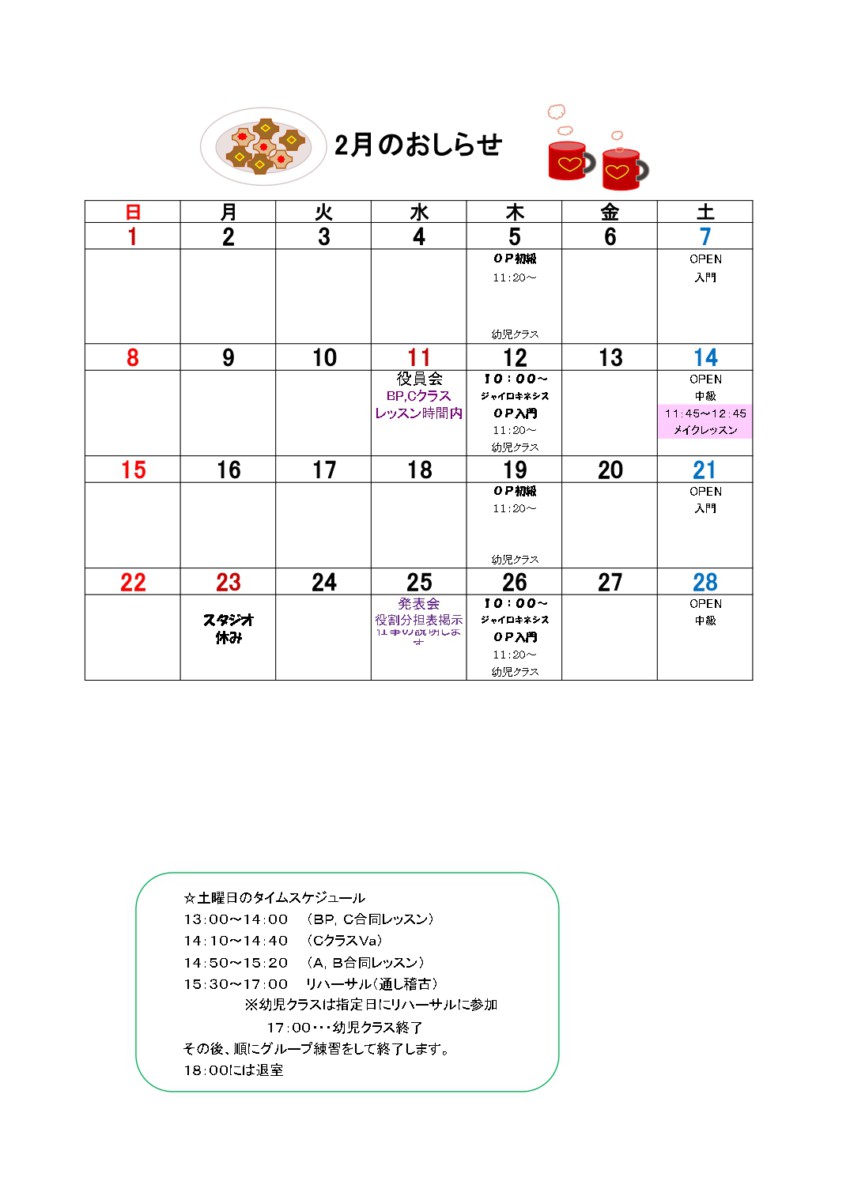 2月のお知らせ