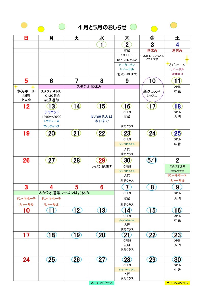 2026年4月 :愛知県岡崎市のクラシックバレエ教室・スタジオならダンススペース